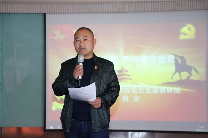 曲宗副教授首先明確了黨章 "根本大法”的地位,指出黨章是規(guī)范和指導(dǎo)黨的工作、黨內(nèi)活動(dòng)、黨的建設(shè)的根本依據(jù)。隨后曲宗副教授介紹了黨章的歷史沿革,以及十九大修改黨章的歷史意義和重要內(nèi)容,號召每一名黨員認(rèn)真學(xué)習(xí)黨章,嚴(yán)格遵守黨章,時(shí)刻與黨中央保持一致,自覺做到"兩個(gè)維護(hù)”。要求每一名黨員都把黨章作為政治思想建設(shè)方面的X光機(jī),每年對照黨章給自己"體檢”一下,紅紅臉、出出汗,牢記入黨初心、遵守黨的紀(jì)律,維護(hù)一名黨員的思想行為純潔性。