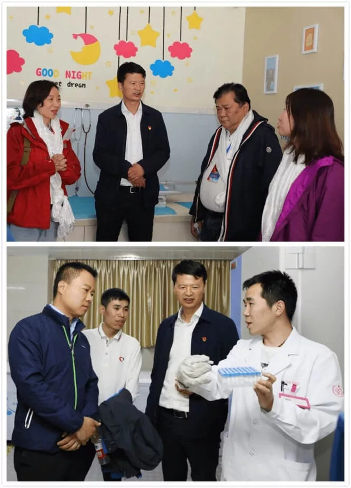 義診期間,中共中央統(tǒng)戰(zhàn)部七局處長郭鵬與"同心共鑄中國心”駐西藏秘書長趙士磊來到了阜康婦產(chǎn)兒童醫(yī)院詳細(xì)查看了正在井然有序進(jìn)行的義診現(xiàn)場,在王斌董事長陪同下參觀阜康婦產(chǎn)兒童醫(yī)院院區(qū),聽取并查看了我院人類輔助生殖醫(yī)學(xué)中心等特色科室的開展情況。