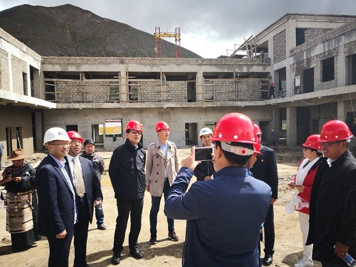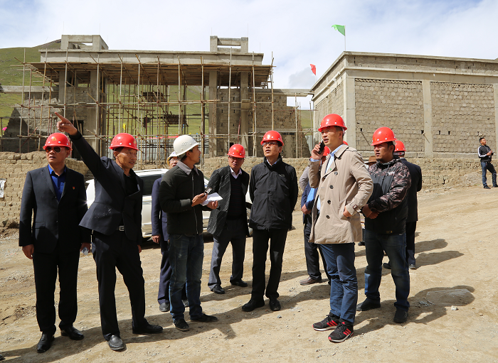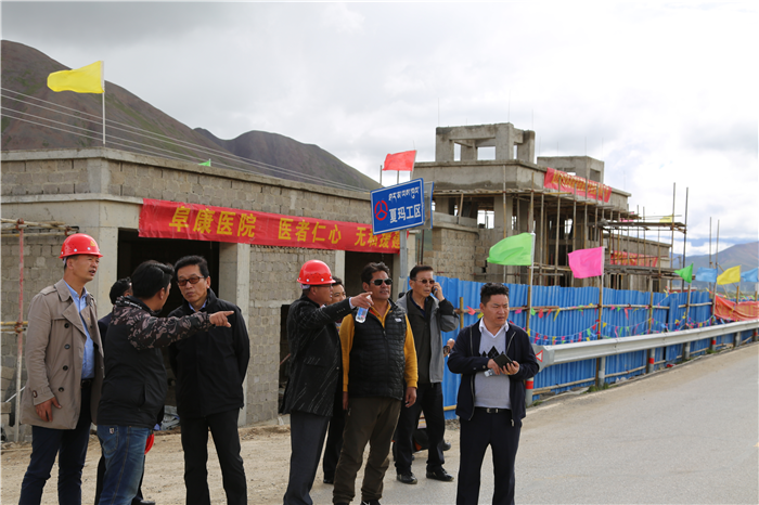 2018年了8月9日,受阜康邀請,西藏自治區(qū)政協(xié)副主席、區(qū)工商聯(lián)主席、區(qū)總商會會長阿沛·晉源,拉薩大昭寺管家洛桑,西藏自治區(qū)社會科學院原處長次旺仁青,西藏阜康醫(yī)療股份有限公司黨委書記、董事長王斌,西藏阜康醫(yī)療股份有限公司黨委副書記、副總經(jīng)理陳彬,西藏阜康醫(yī)院名譽院長嘎布,阜康生殖醫(yī)學中心實驗室主任劉鋒,阜康體檢中心主檢師瓊瑪,阿沛·晉源主席秘書旦增一行早上8點從拉薩出發(fā),一路顛簸馳騁于下午2點50分許抵達那曲地區(qū)嘉黎縣夏瑪鄉(xiāng)。聽說晉源主席要來視察衛(wèi)生院的建設工作,嘉黎縣縣長吾金不顧受傷的左腿帶領當?shù)馗刹咳罕娫缭绲群蛟谙默斷l(xiāng)衛(wèi)生院建設現(xiàn)場。
