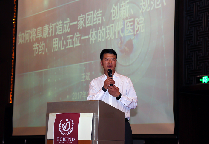 "現(xiàn)在整個中國都已融入世界發(fā)展的快車道,中國價值已被越來越多的國家認可。習近平主席提出的四個全面、五位一體、人類命運共同體也得到越來越多人的擁戴。而我們個別員工還停留在有誰罩著我,跟著誰混保平安的落后思想!現(xiàn)在我們唯有團結一致、勇于創(chuàng)新、規(guī)范管理、厲行節(jié)約及用心服務的思想才能在激烈的醫(yī)藥行業(yè)闖出阜康的一片天地。現(xiàn)在企業(yè)準備上市,大家必須嚴格按照上市企業(yè)的要求做到自律,規(guī)范服務接受社會大眾的監(jiān)督!因為大家那怕不好的一言一行都會影響阜康的上市工作!從阜康過去發(fā)現(xiàn)的問題來看,這些問題的出現(xiàn),主要是我王斌的問題,我以前只要求大家要做什么沒告訴大家怎么做才符合阜康的核心價值觀,缺少必要的崗前培訓。以后要加強德育和治理能力的培訓,只有這樣才能形成院領導服務科主任,科主任服務科員,行政后勤服務醫(yī)技護臨床一線,一線員工服務患者的思想,主動提高服務意識和水平徹底告別生、硬、冷的服務態(tài)度!讓阜康再次成為西藏醫(yī)藥行業(yè)的標桿?!蓖醣笳f。