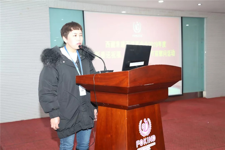西藏阜康天使基金會秘書長吉拉帶來了阜康天使基金會創(chuàng)始人王斌、劉瀟瀟對困難員工的祝福和慰問,勉勵大家努力工作,與阜康共同進步,在走向幸福的路上一個都不能少,并祝大家過一個幸??鞓纺?由于此次受助人員都是藏族員工,吉拉秘書長用藏語鼓勵大家積極生活、努力工作,要用一顆感恩的心回報社會。阜康天使基金會將在區(qū)黨委、政府的領(lǐng)導(dǎo)下,緊跟時代步伐,發(fā)展創(chuàng)新,爭取在助醫(yī)、助學(xué)、助困上幫助到更多的人。