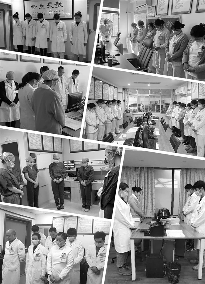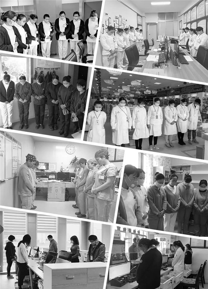 上午10點,隨著防空警報拉響,阜康醫(yī)療全體黨員和醫(yī)務(wù)工作者、行后人員分別在阜康醫(yī)院各院區(qū)、各科室、各藥房肅穆站立、低頭默哀。在這次疫情的特殊期間,有些人倒下了,但更多的人勇敢地扛起責任,在黨中央的堅強領(lǐng)導(dǎo)下和疫情頑強斗爭,如今我們已經(jīng)基本控制這場斗爭的局面,正在向全面勝利努力奮進。