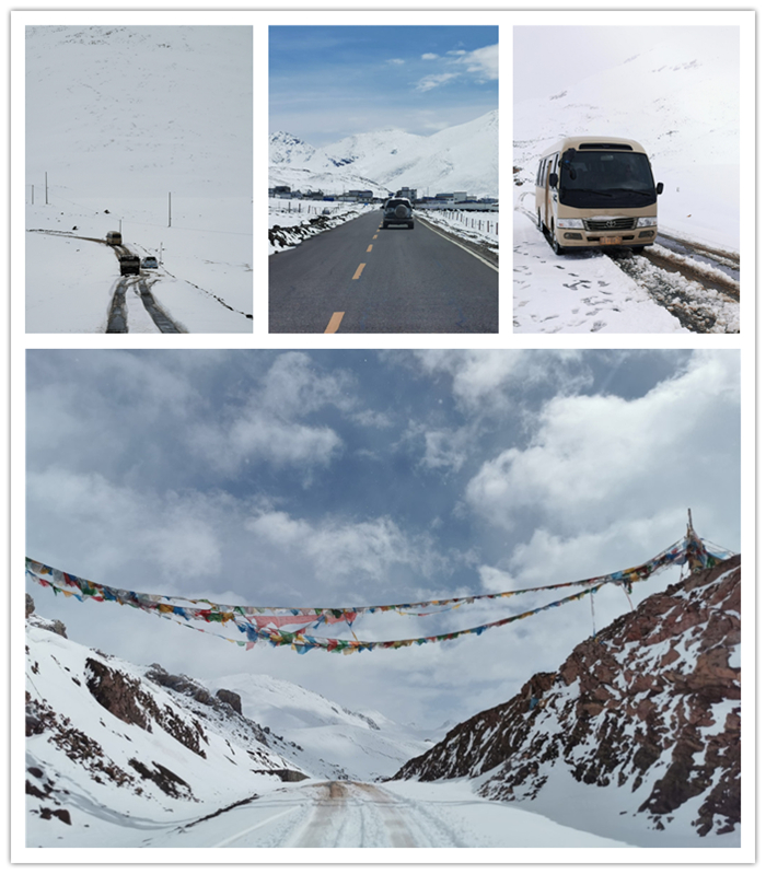 8點30分左右,義診隊伍到達當(dāng)雄縣境內(nèi)時天氣驟變,漫天的飛雪瞬時將羌塘草原披上了一件銀色外衣,天地間茫茫一片,駕駛員為了保證行車安全,放慢了車速,謹(jǐn)慎駕駛。
