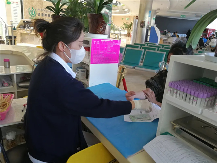 這次獻(xiàn)血活動(dòng)安置在阜康體檢中心。李紅燕主任出現(xiàn)在現(xiàn)場,如一個(gè)主人一般,幫襯著打理。黨委秘書劉雨蒙和院辦干事曲珍,以及阜康大藥房店長劉秀、何文秀,在現(xiàn)場忙前忙后。