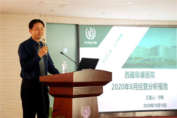 在醫(yī)院運營方面,寧曉總院長匯報了2020年8月經營分析報告,他以詳細的圖文數(shù)據(jù),分析了醫(yī)院的經營情況,并提出了下一步工作重點。