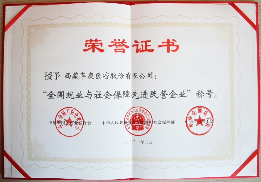 "就業(yè)是最大的民生,收入是民生之源”,西藏阜康醫(yī)療股份有限公司將以本次榮獲"全國就業(yè)與社會保障先進(jìn)民營企業(yè)”為新的起點,繼續(xù)加大就業(yè)與社會保障工作力度,在企業(yè)發(fā)展的同時進(jìn)一步增加吸納就業(yè)人數(shù),引進(jìn)高級專業(yè)技術(shù)人才,加大現(xiàn)有人員技能培訓(xùn)力度,努力提高職工收入水平,為全面推進(jìn)社會主義現(xiàn)代化建設(shè)和鄉(xiāng)村振興事業(yè)做出應(yīng)有的貢獻(xiàn)。