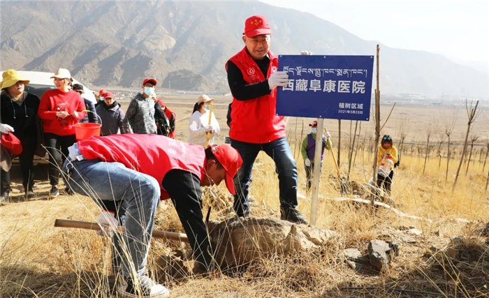 3月28日上午,為了響應拉薩市綠化委員會"積極參與義務植樹,共建綠色幸福拉薩”的號召,中共西藏阜康醫(yī)療股份有限公司委員會組織員工及員工家屬共78人前往堆龍德慶郊區(qū)義務植樹。