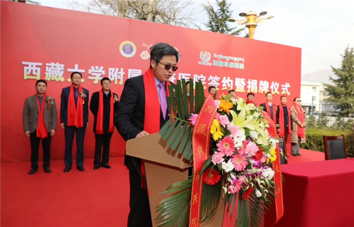 在致辭中,紀(jì)建洲校長表示,西藏阜康醫(yī)院作為西藏自治區(qū)首家三級綜合非公醫(yī)療機構(gòu),長期以來與西藏大學(xué)在教學(xué)、科研、學(xué)術(shù)交流等方面保持良好合作,并為西藏大學(xué)疫情防控、學(xué)生返校等工作積極主動提供醫(yī)療資源,伸出援助之手,充分彰顯企業(yè)的社會責(zé)任感。