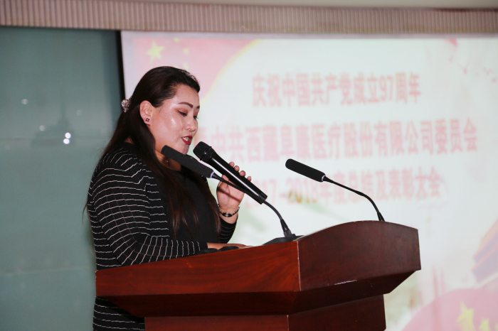 牛亞青、張政、雷羊州、劉秀等同志獲得"優(yōu)秀共產(chǎn)黨員”稱(chēng)號(hào),何文秀同志、索珍同志獲得"優(yōu)秀黨務(wù)工作者”稱(chēng)號(hào),義診組黨小組獲得"優(yōu)秀黨小組”榮譽(yù),阜康"老兵之家”支部委員會(huì)、中共西藏阜康藥店聯(lián)合支部委員會(huì)獲得"先進(jìn)基層黨組織”榮譽(yù)。陳彬、何文秀、劉秀、李映、李燕科、江潤(rùn)霞、孫自豪等7位同志獲得阜康雪域天使志愿者服務(wù)隊(duì) "志愿者之星”。區(qū)黨委組織部四處和公司黨委領(lǐng)導(dǎo)為獲獎(jiǎng)人員頒獎(jiǎng)。