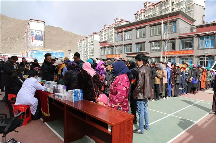 3月5日,西藏阜康醫(yī)療股份有限公司黨委志愿義診組來到拉薩市經(jīng)開區(qū)德吉康薩社區(qū),為一千多名農(nóng)牧區(qū)搬遷群眾進行義診,并捐贈了價值一萬多元的藥品。