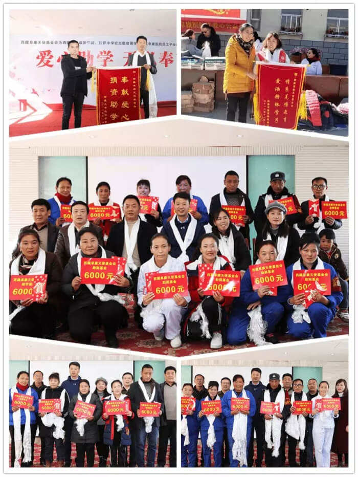 2018年2月11日,西藏阜康天使基金會(huì)和西藏阜康醫(yī)院黨委、工會(huì),在新春佳節(jié)來(lái)臨之際慰問(wèn)困難群眾和員工,根據(jù)困難程度分別發(fā)放6000元、12000元、60000元不等的慰問(wèn)金。同年11月,"西藏阜康天使基金會(huì)助學(xué)助醫(yī)捐贈(zèng)儀式”在阜康婦產(chǎn)兒童分院舉行,在本次捐贈(zèng)儀式上,西藏阜康天使基金會(huì)為西藏大學(xué)政法學(xué)院30名貧困學(xué)生,每人捐助4000元的生活補(bǔ)貼,總金額為120000元人民幣。通過(guò)這些幫扶活動(dòng)幫助了貧困員工、貧困群眾和學(xué)生走出困境、重塑生活,為他們生活注入了新的希望。