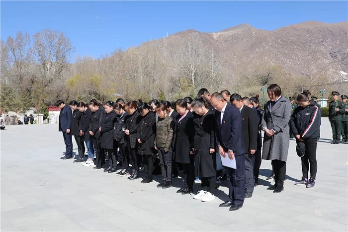 儀式結(jié)束以后,全體黨員整齊肅穆地走過紀念碑,懷著對革命先烈的崇敬之情瞻仰了烈士陵墓,同時聽取引導(dǎo)人員關(guān)于革命烈士的事跡介紹。在烈士英名墻下,大家仔細瀏覽烈士的名字;在領(lǐng)導(dǎo)干部的楷??追鄙镜哪贡?,大家深深鞠躬表達對革命先烈的崇敬與追思;面對一排排長眠的革命烈士,大家深切感受黨的事業(yè)所經(jīng)歷的艱辛與付出的巨大犧牲,深深思考作為一名新時代的中國共產(chǎn)黨員應(yīng)該如何肩負起歷史賦予的使命,在黨中央和區(qū)黨委的堅強領(lǐng)導(dǎo)下,為西藏的穩(wěn)定發(fā)展、為中華民族的偉大復(fù)興貢獻自己的力量,堅決做一名無愧于黨和人民、無愧于時代的合格共產(chǎn)黨員。