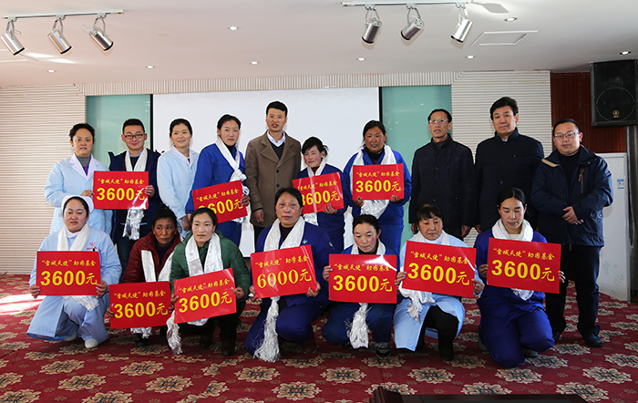 本次活動(dòng)由公司黨委青年兼宣傳委員喬倩同志主持,公司黨委書記王斌同志、黨委副書記敖德秀同志、阿旺建才副院長(zhǎng)、李君副院長(zhǎng)、歐珠羅布副院長(zhǎng)、財(cái)務(wù)總監(jiān)朱江等院領(lǐng)導(dǎo)、三家醫(yī)院部分黨員及16位受助員工參加。